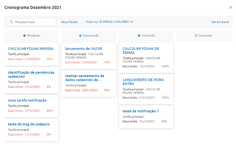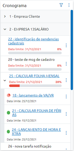 Caso alguma tarefa possuir data limite igual ou posterior a competência atual, a tarefa será apresentada normalmente na lista de pesquisa, até que o status esteja igual a Concluído ou Cancelado.
