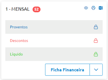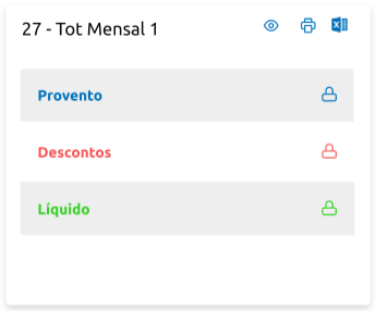 O recurso de ocultar ou apresentar valores é disponibilizado para cada resumo de folha apresentado, indicados pelos