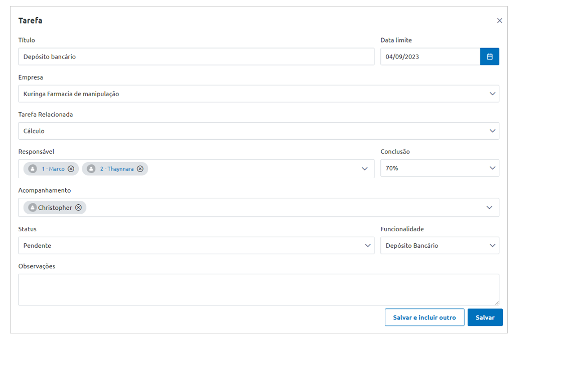 Copiar - Através dessa função é possível abrir a tela de cadastro da tarefa em modo edição, com dados já preenchidos de acordo com a tarefa copiada, basta alterar qualquer uma das informações no momento da edição.