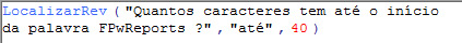A função LocalizarRev retorna a posição em que um caractere ou uma sequência de caracteres foram localizados em um determinado texto a partir de uma posição inicial, sendo a leitura feita no texto da direita para a esquerda.