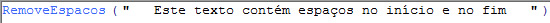 O resultado da fórmula acima é Este texto contém espaços no início e no fim.