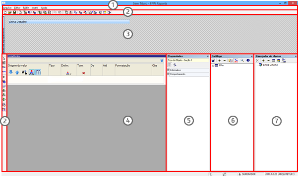 A estrutura do Gen.te Relata no modo de edição de leiaute é dividida em 7 partes, conforme detalhamento abaixo: