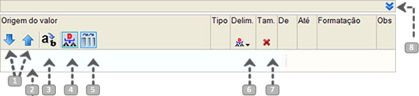 É possível separar os valores do leiaute por delimitador (1) e/ou por tamanho (2). Se o formato do arquivo a ser gerador for definido como CSV, não será possível definir um delimitador ou tamanho como separador de valor, pois para tipos de arquivo CSV o separador obrigatoriamente deverá ser o Ponto e Vírgula ( ; ).