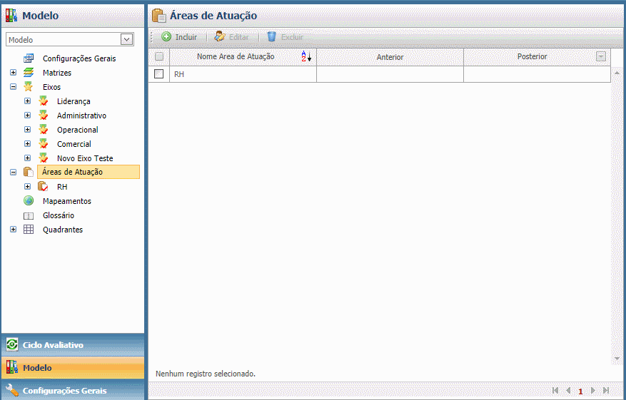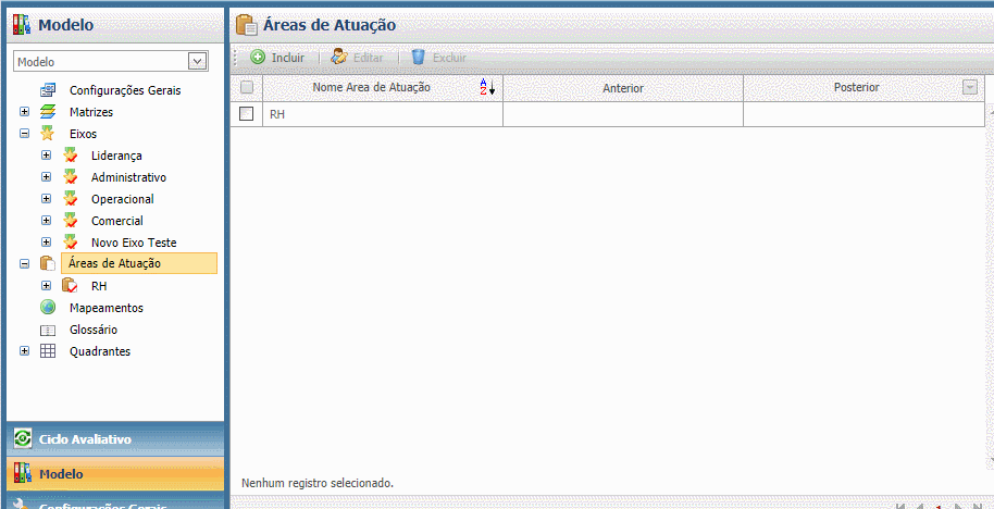 Através dessa funcionalidade cadastre as áreas de atuação serão utilizadas quando o conteúdo avaliado difere.