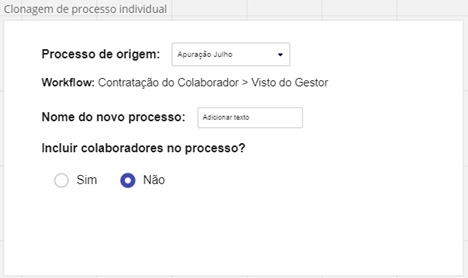 Em Clonagem de processo individual, realize as configurações necessárias para o processo clonado.