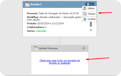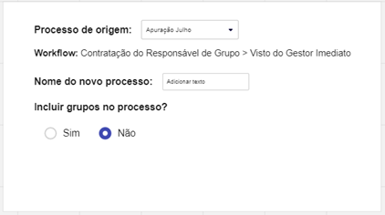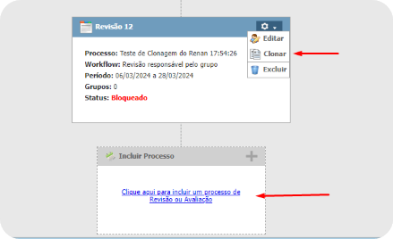 É possível realizar a clonagem de um Processo de Grupo já criado. Clique em