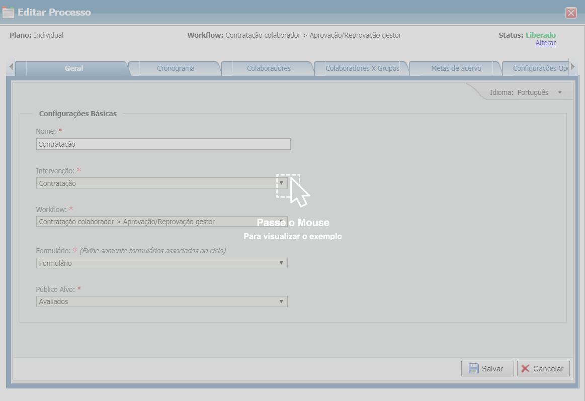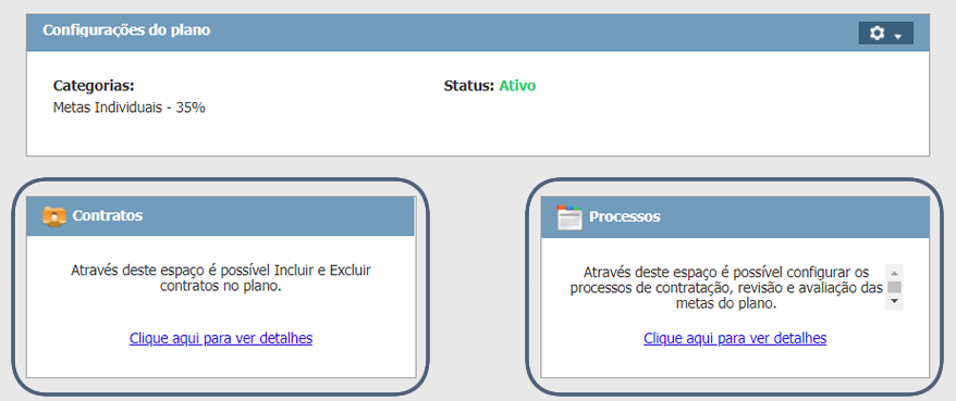 Através deste é possível configurar os processos de contratação, e realizar revisões e avaliações das metas do plano.