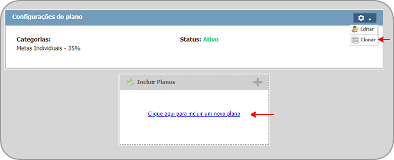 Através das Configurações do Ciclo, é possível realizar configurações de Planos para cada Ciclo individualmente, e também efetuar configurações nas Metas Compartilhadas do ciclo.