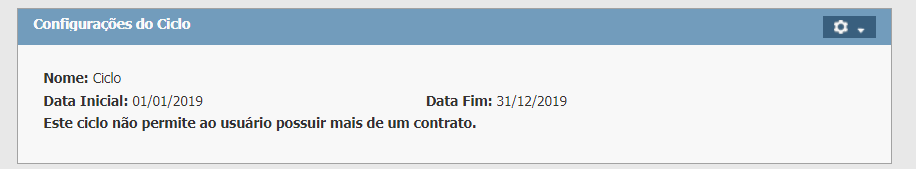 Para todo Ciclo selecionado, são disponibilizados os seguintes itens para incluir as configurações necessárias: