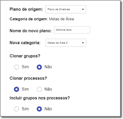 Em Clonagem de plano de metas compartilhadas, realize as configurações necessárias para o processo clonado.