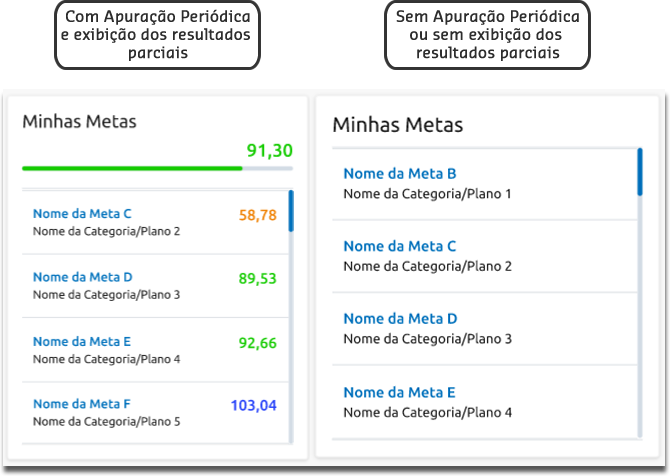 Mesmo com a apuração periódica habilitada, se o Administrador não informar que deseja exibir os resultados parciais nas Configurações do Ciclo, as metas serão listadas em ordem alfabética, não exibindo suas parciais.