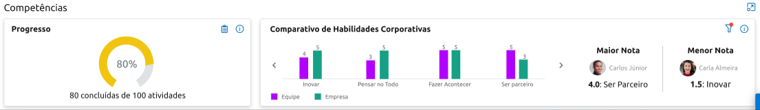 Na opção Progresso, o usuário poderá fazer o acompanhamento do progresso de conclusão de atividade de avaliação de Competências. Será exibido por meio de porcentagem.
