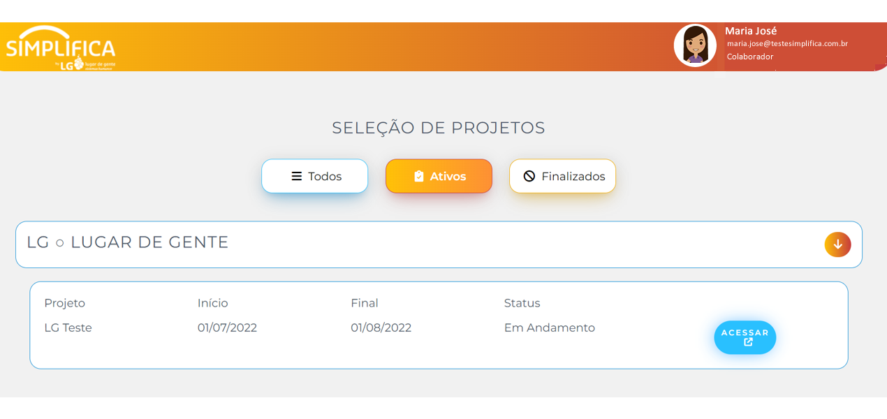 Na tela Seleção dos Projetos, defina o projeto que deseja acessar, clicando em