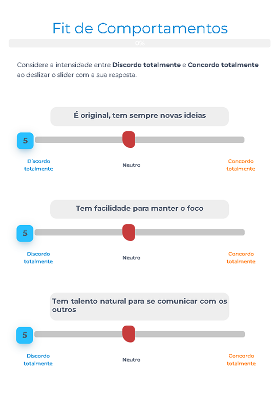 Ao clicar na seção Ver Perfil Comportamental, o usuário será direcionado a plataforma de Perfil Comportamental que permite avaliar o perfil comportamental e as principais características do colaborador no ambiente de trabalho.