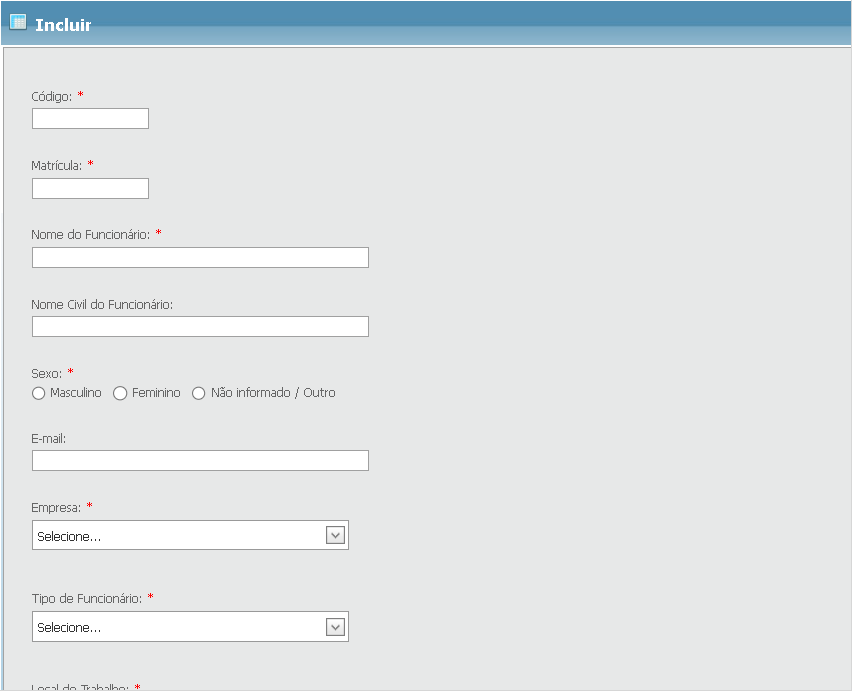 Através desta funcionalidade, é possível realizar cadastros dos funcionários que irão fazer parte da base de dados do cliente.