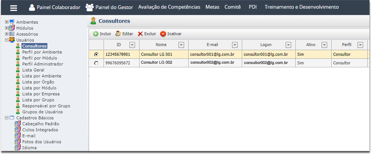 Com o intuito de garantir a Segurança da Informação no uso da Suíte Gen.te, foi disponibilizada na seção Usuários da administração do sistema a funcionalidade Consultores, onde devem ser cadastrados os consultores da LG lugar de gente que terão acesso ao sistema do cliente durante implantações ou situações de suporte.