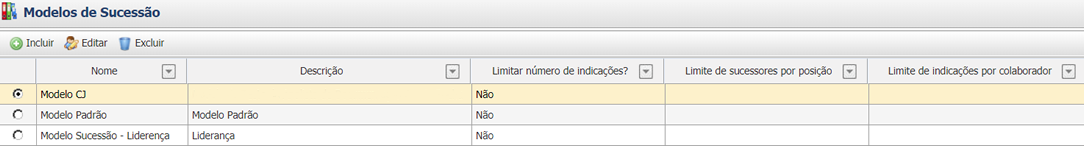 Caso não haja inclusão de modelo de sucessão o administrador não poderá definir os itens para análise e as regras de criticidade para avaliar a sucessão dos colaboradores.