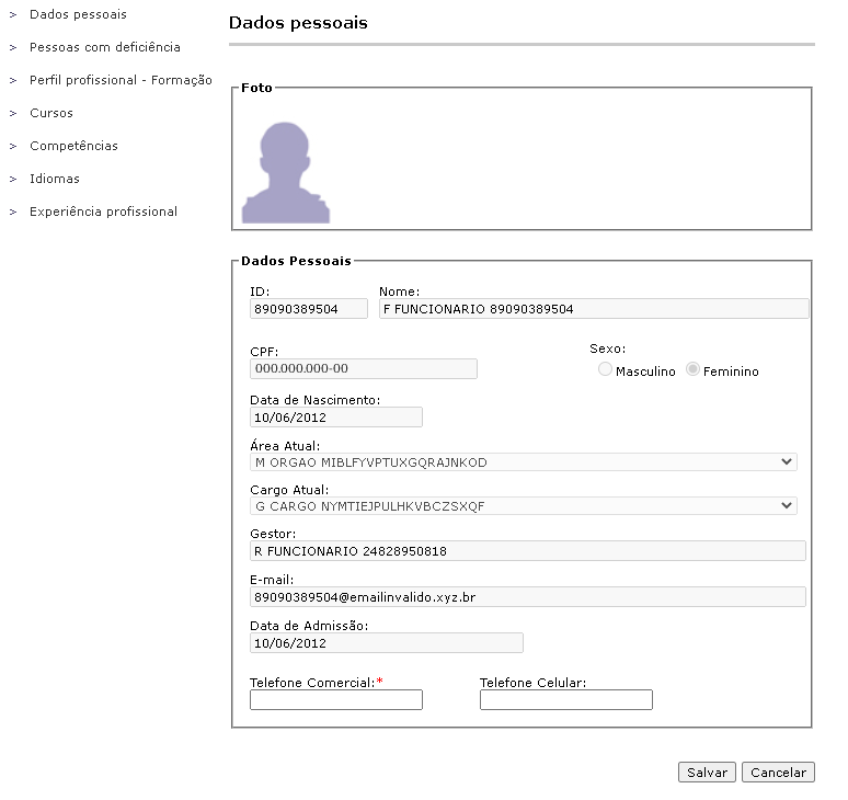 Editar Currículo - Ao clicar nessa opção, o sistema exibirá a tela de edição de currículo conforme imagem abaixo: