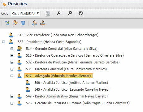 Para visualizar as hierarquias das posições, é necessário que o cadastro do Ciclo tenha sido feito previamente através da funcionalidade Configurações.