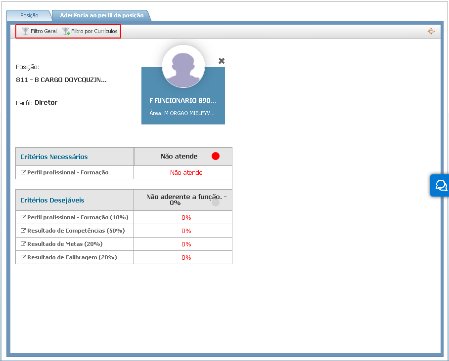 Através dessa guia é permitido uma análise de aderência ao perfil da posição que será exibido para usuários colaboradores e gestores: