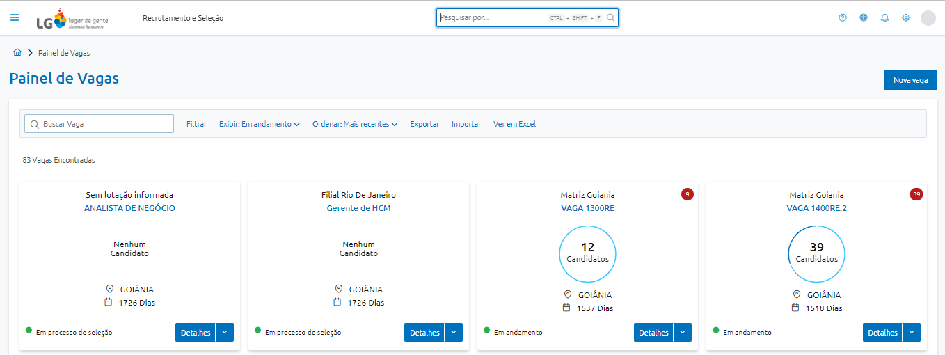 O Painel de Vagas tem como objetivo listar todas as Vagas em andamento do produto, considerando sempre a visibilidade no usuário logado. Nesse sentido, deve-se considerar que a Vaga agora representa a unificação de: